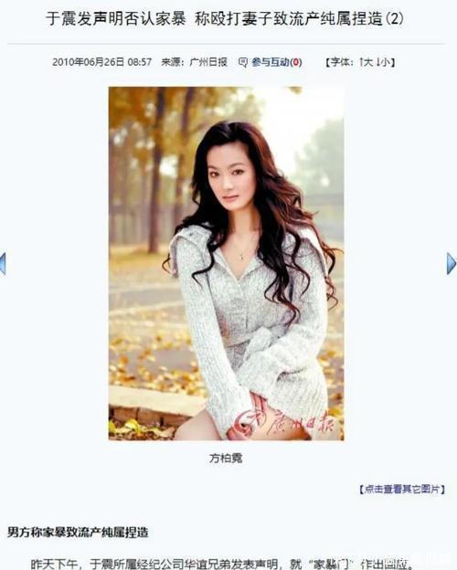 而于震则坚决予以否认,甚至声称方柏霓完全是杜撰的。这两个人各执一词,使得当时的新闻成为了真假难辨的热点话题。法院最终裁定两人解除婚姻关系,但并未确认家庭暴力的存在,这场纷争终于告一段落。