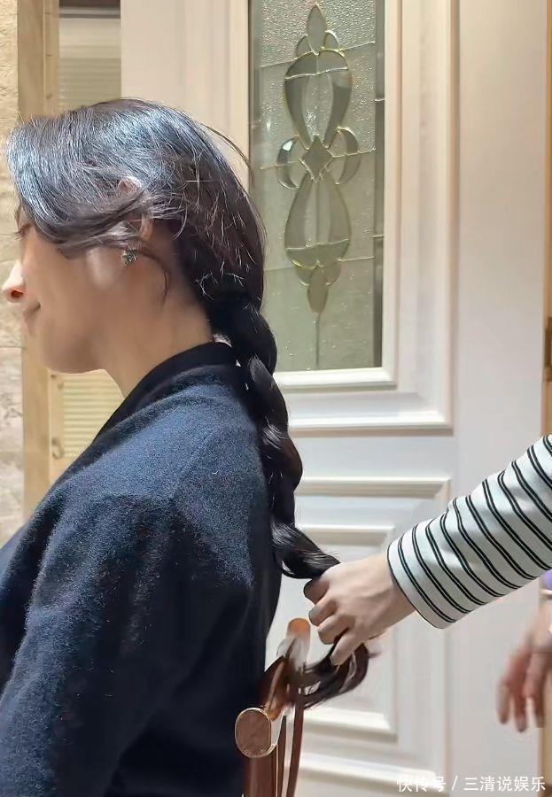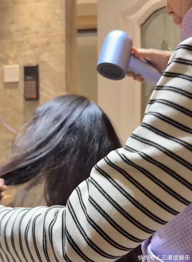 女儿在她工作时,主动过来帮她扎头发,还顺手给她直播产品打广告:“这个泡脚包,妈妈直播间有优惠。”晚饭后,一起泡脚、看书、讲故事,直到入睡。